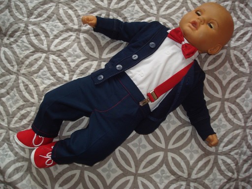 - SPODNIE GRANATOWE Z CZERWONĄ NITKĄ TYPU SLIM W KANCIK GUMKA W PASIE Z GUZICZKAMI LUB BEZ
