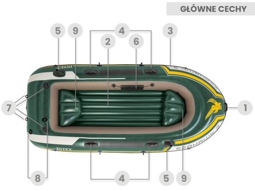 - Miękkie, wyprofilowane siedzisko to 100% komfort podczas wiosłowania bądź spokojnego odpoczynku w pontonie.