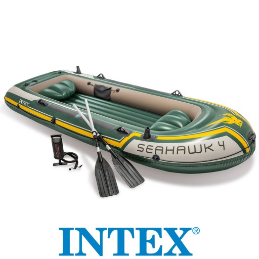 - Duży ponton Seahawk 4 Set uznanej marki INTEX o wymiarach 351 x 145 x 48 cm zapewni komfort i swobodę podczas pływania dla 4 osób z maksymalnym obciążeniem do 480 kilogramów