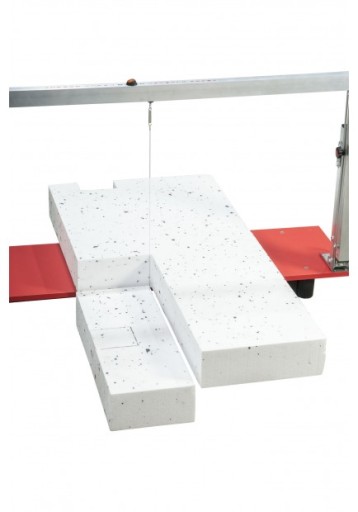 - Ta wersja maszyny do cięcia styropianu i styroduru także wyposażona została w możliwość przełożenia drutu do cięcia w pionie. W szybki i prosty sposób, dzięki tej funkcji można wycinać z płyty styropianu różne kształty: „elki”, kółka, kwadraty, wpusty pod krokwie itp.