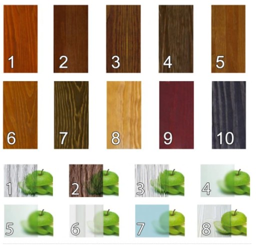 Kolorystyka drzwi i szyb: