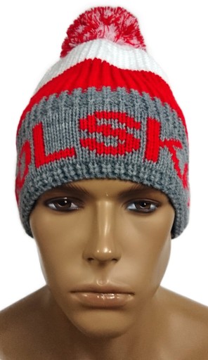 GRUBA CIEPŁA ZIMOWA CZAPKA KIBICA POLSKI Z POMPONEM.