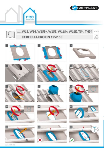 PERFEKTA PLUS DN 125 - Kompletny kominek wentylacyjny z profilowanym przejściem dachowym, montowany bezpośrednio na blachodachówce. Specjalne kanały odprowadzają skropliny (kondensat) na pokrycie dachowe.