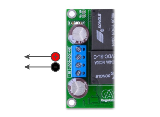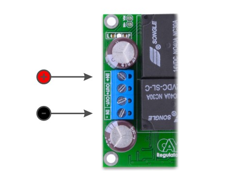 Podanie napięcia na wejście "IN1" spowoduje rozpoczęcie pracy silnika w "Prawo" , natomiast na "IN2" spowoduje rozpoczęcie pracy w "Lewo", odłączenie napięcia zatrzyma silnik.