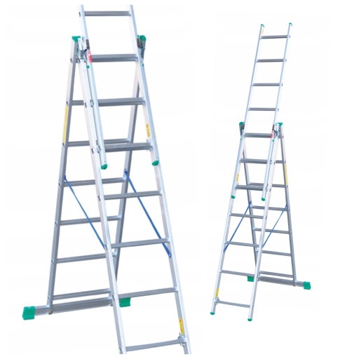 - Wielofunkcyjna drabina aluminiowa do zastosowań wszechstronnych i profesjonalnych.