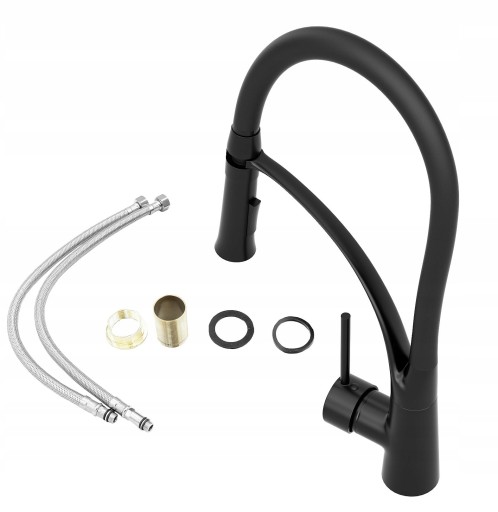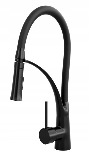 BATERIA KUCHENNA Z ELASTYCZNĄ WYLEWKĄ CZARNA DWA STRUMIENIE WODY ZLEW NEXO