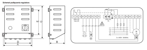 Transformatorowe, przemysłowe regulatory A3RW do regulacji prędkości obrotowej trójfazowych silników wentylatorowych sterowanych napięciowo. Montowane w profesjonalnych instalacjach wentylacyjnych lub grzewczych. Do pięciostopniowego nastawu prędkości obrotowej służy pokrętło umieszczone na panelu metalowej obudowy. Wyposażone w niezależny włącznik oraz lampkę sygnalizującą alarm. Obwód sterowania regulatora chroniony bezpiecznikiem. Wbudowane zabezpieczenie preciwzamrożeniowe (styki FS) oraz zabezpieczenie termiczne silnika (styki TK). Wykonanie w II klasie izolacji Stopnień ochrony IP21. Max temperatura otoczenia 25°C. Klasa cieplna izolacji B(130°C). Wykonanie zgodnie z EN 61558-2-13.