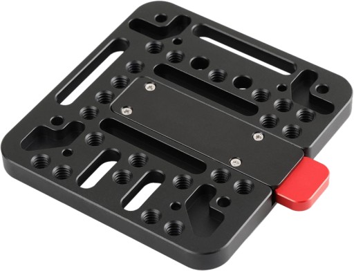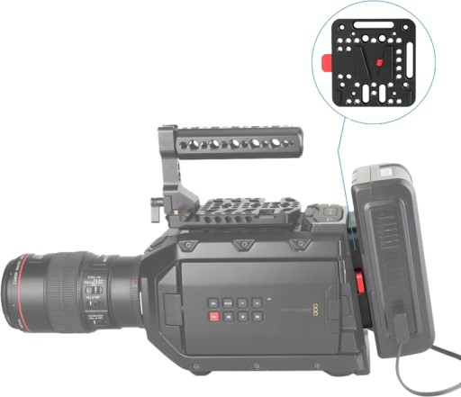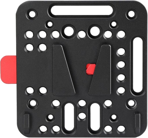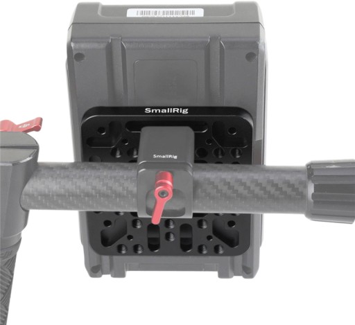 SmallRig V-Lock Assembly Kit 1846 is a quick release set based on the standard V-Lock. It comes with a Female V-Dock and a Male V-Lock. There are multiple mounting holes and grooves on the Female V-Dock, and you can attach this assembly directly to a SmallRig camera cage kit, SmallRig monitor frame, or SmallRig shoulder pad mount. Besides, you can mount this assembly kit to SmallRig 25mm rod clamp 1860 which is designed for DJI Ronin M/MX; with this setup, you can put your V-Mount battery on top of the Ronin to power all the accessories, which minimizes camera weight on gimbals. The two integrated protruding portions prevent it from twisting when the V-Mount battery attached. The V-Lock with three M3 holes can be used as a replacement of the original V-Lock comes with the V-Mount battery.