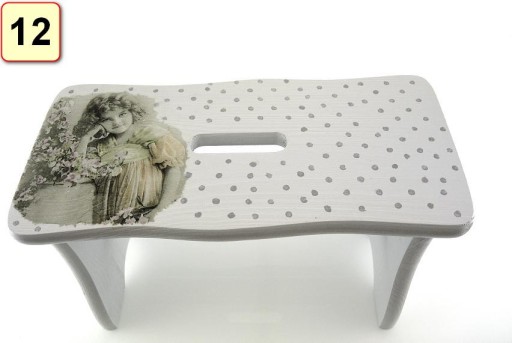 Krzesełka są ręcznie zdobione i malowane białą emalią akrylową przeznaczoną do dekoracyjnego malowania przedmiotów z drewna.