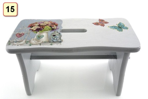 STOŁECZEK SOSNOWY RĘCZNIE ZDOBIONY
