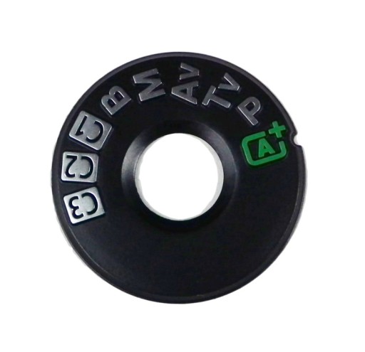 Tarcza pokrętła trybu DIAL do aparatu Canon EOS 7D Mark II i 5DS. Do zamocowania tarczy należy użyć kleju B-6000, B-7000 lub podobnego do wklejenia tarczy w pokrętło. Wysokiej klasy zamiennik.