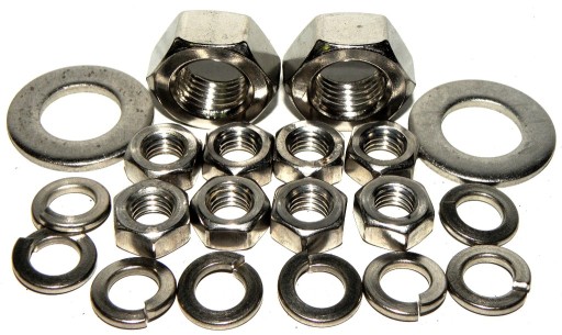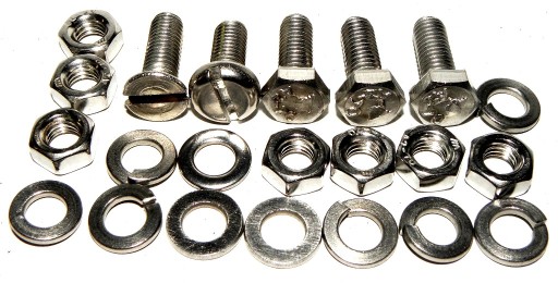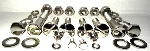 Komplet złożony jest z chromoniklowych elementów nierdzewnych wykonanych w klasie A2. Dodatkowo łby śrub i wkrętów w grupie PRZEDNIE ZAWIESZENIE zostały wypolerowane na lustro jak widać na zdjęciach w aukcji. W skład kompletu wchodzą śruby, wkręty, nakrętki i podkładki podzielone w sposób umożliwiający bezproblemowy montaż poszczególnych elementów motocykla.