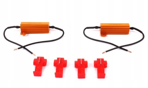 Dołączone do zestawu rezystory umożliwiają poprawną pracę kierunkowskazów przy zastosowaniu zwykłego przewywacza. Należy je wpiąć równolegle w układ kierunkowskazu za przerywaczem oddzielnie dla strony lewej i prawej.