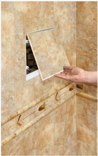 - Zabudowany tym sposobem otwór rewizyjny idealnie komponuje się z resztą ściany.