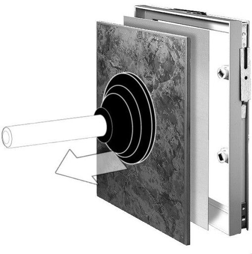- Do stalowej płytki przykleja się glazurę, bądź inny element wykończeniowy.
