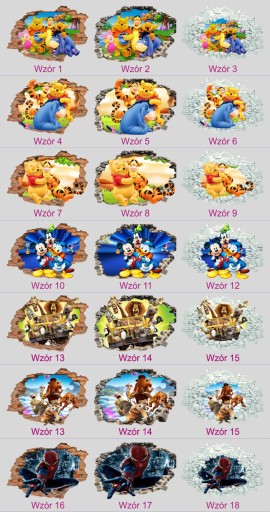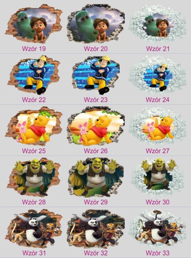 Przedmiotem aukcji są naklejki "Dziura w ścianie 3D - Dinozaury".
