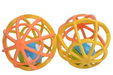 Zewnętrzna powłoka piłki jest ażurowa, żeby dziecku było łatwo ją chwytać. Wykonana jest z gumy, dlatego piłeczka odbija się od podłoża, jest miękka i bezpieczna. Wewnętrzna twarda plastikowa kulka świeci i wydaje śmieszne odgłosy.