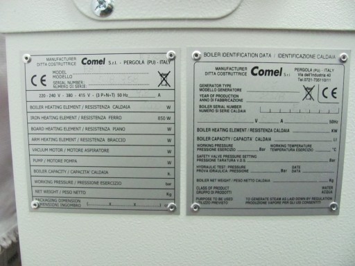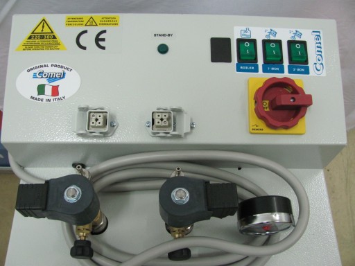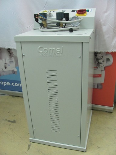 Profesjonalna wytwornica pary Comel FB/F ze zbiornikiem na wodę i pompą wirową zasilającą automatycznie o mocy 550 W. Oszczędność czasu, wydajność oraz komfort pracy w jednym urządzeniu. Zbudowana z kotła ze stali inox o pojemności do 7 litrów o mocy grzałek 4 kW. Przystosowana do podłączenia 2 żelazek. Wyposażona we wszystkie niezbędne dla bezpieczeństwa pracy instrumenty (zawór bezpieczeństwa, kontrolka poziomu wody, manometr kontrolujący ciśnienie oraz elektrozawór do regulacji pary).