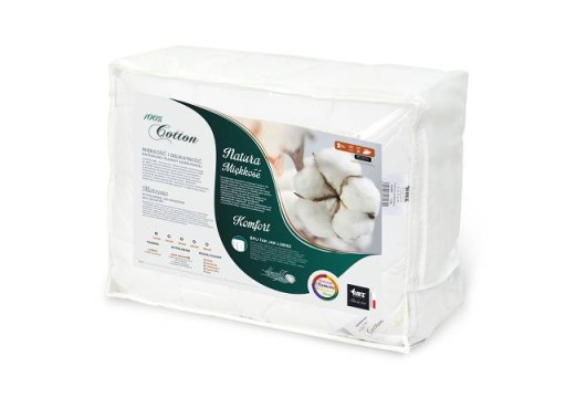 Tkanina bawełniana użyta do pokrycia kołder i poduszek z linii COTTON to tkanina o splocie płóciennym, jest miękka i lejąca czyniąc wyroby komfortowe i otulające. Te wyjątkowe naturalne właściwości w połączeniu z wysoko jakościowym wypełnieniem gwarantują głęboki i w pełni relaksujący sen i wypoczynek.