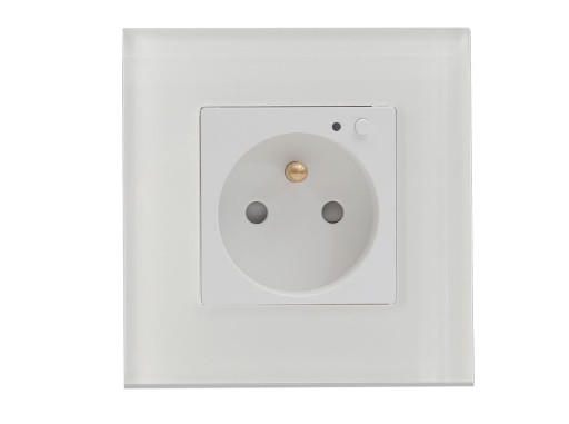 Efektowne gniazdo elektryczne ze szklanym panelem w kolorze białym. Gniazdko idealnie pasuje do innych naszych produktów z serii B-Line, jak włączniki dotykowe, mechaniczne itp.