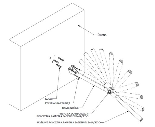 - Ramię zabezpieczające (pionowe) służy wyłącznie jako oparcie dla boxa