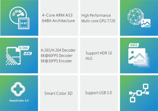 Najnowszy System Android 7.1 Nougat w połączeniu z czterordzeniowym najszybszym procesorem Quad Core o taktowaniu aż 2GHz zapewniają najwyższy standard pracy i szybkość działania urządzenia nawet w rozdzielczości ze wsparciem 4k(UHD) i 2K (FHD), HDR10, CEC i HDCP 2.2. Urządzenie po podłączeniu do zasilania oraz kabla HDMI gotowe do pracy !