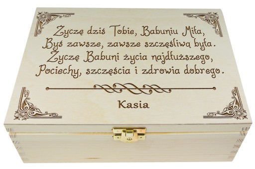 - wysokiej jakości, sosnowe pudełko w kolorze naturalnym.