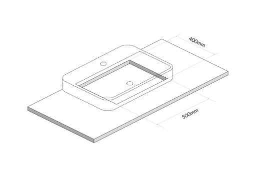 Poniżej przedstawiamy sugerowany rozmiar otworu w blacie do prawidłowego osadzenia umywalki.