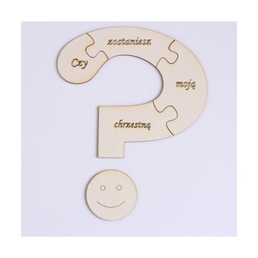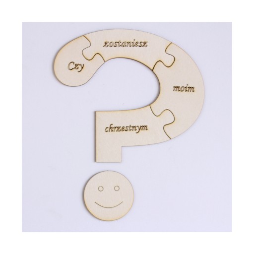 Puzzle są wypalane laserowo. Po złożeniu tworzą pytajnik z prośbą o zostanie Matką Chrzestną lub Ojcem Chrzestnym widoczny na zdjęciach poniżej.