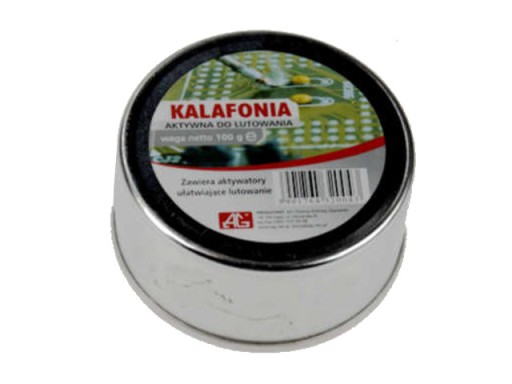 Kalafonia aktywna z dodatkiem aktywatorów ułatwiających lutowanie. Produkt posiada aktywność zbliżoną do pasty lutowniczej. Kalafonia wspomaga proces lutowania, zapobiega utlenianiu się złączy, eliminuje powstawanie tak zwanych zimnych lutów.
