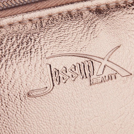 Jessup Golden Cosmetic Bag to praktyczna kosmetyczka, w której można przechowywać zarówno pędzle do makijażu, kosmetyki lub inne, drobne przedmioty. Wykonana z trwałego tworzywa skóropodobnego (poliuretanu). Zapinana na zamek błyskawiczny. Kosmetyczkę cechuje wyjątkowy design, praktyczność i jakość wykonania. Na naszej innej aukcji dostępna jest ta sama kosmetyczka w mniejszym rozmiarze.