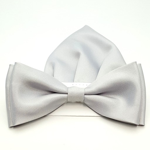 Klasyczna muszka z ułożoną w trójkąt poszetką na kartoniku, do kieszonki marynarki.