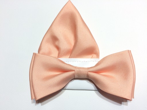 Klasyczna muszka z ułożoną w trójkąt poszetką na kartoniku, do kieszonki marynarki.