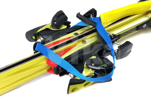 Po nałożeniu pętli na przednie i tylne wiązania nart gotowe są do wygodnego przenoszenia.