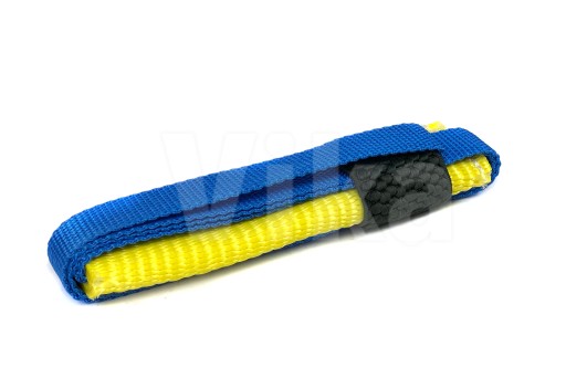 Krok 1. Zakładanie uchwytu na narty należy zacząć od nałożenia mniejszej pętli na przednie wiązania nart, zaczynając pojedynczo. Podczas nakładania pętli na drugie przednie wiązanie, pętla może być za mała. W tym przypadku należy ściągnąć żółty uchwyt w celu powiększenia pętli.