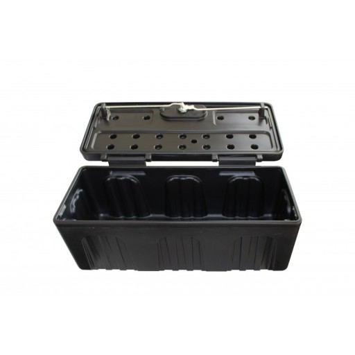Skrzynia plastikowa STABILO 750 o wymiarach 750 x wysokość 340 x 300 mm i pojemności 60 l jest idealnym rozwiązaniem dla klientów i właścicieli przyczep i pojazdów użytkowych. Zamek znajduje się w rękojeści i jest chroniony przez gumową osłonę przed wodą i brudem.