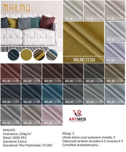 Dostępne materiały z w/w galerii tkanin po uzgodnieniu.