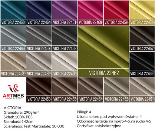 Dostępne materiały z w/w galerii tkanin po uzgodnieniu.