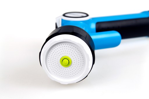 Urządzenie posiada ciekawy design, ergonomiczną rączkę pistoletową i prysznicową końcówkę.