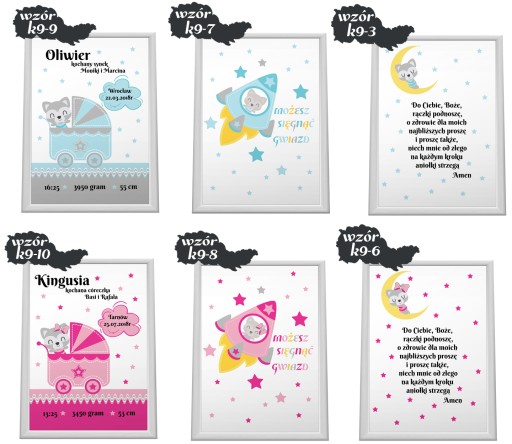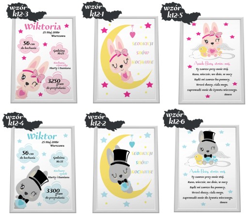 Każdy Obrazek jest indywidualnie spersonalizowany (np. metryczka), czyli dopasowany do rzeczywistych informacji o dziecku, które to należy do nas przesłać zaraz po zakupie .