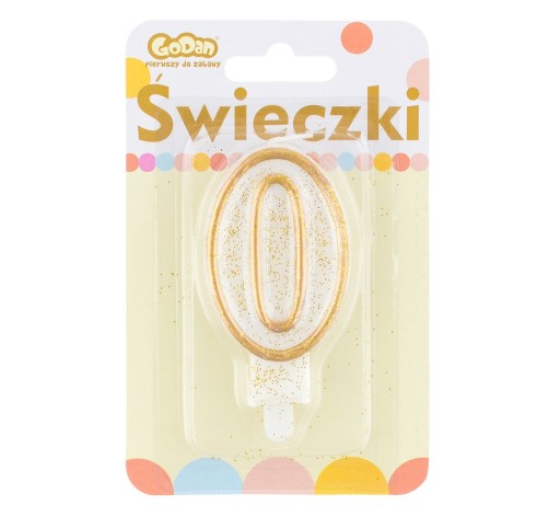 - Świeczka w kolorze białym delikatnie obsypana brokatem ze złotym obramowaniem - cyfra "0"