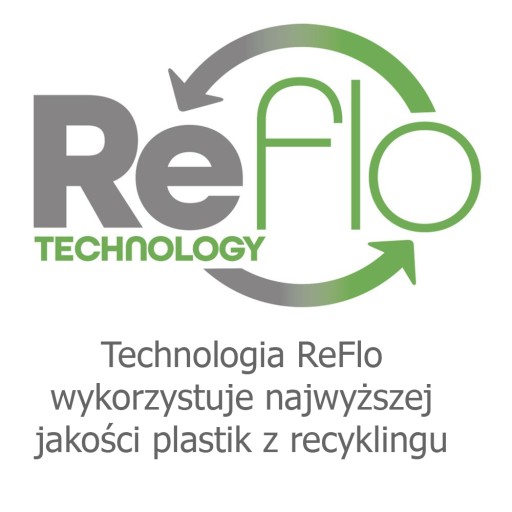 - wykonany z najwyższej jakości tworzywa sztucznego pochodzącego z recyklingu przy użyciu innowacyjnej technologii ReFlo