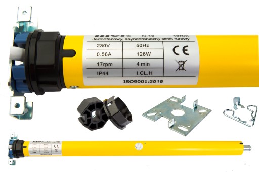 N-10P Silnik rurowy 10Nm 230V (YYGL35P-10/17) z funkcją wykrywania przeciążenia przystosowany do rury oktagonalnej o średnicy 40mm. Posiada adaptacyjne ustawienia położeń krańcowych. Montaż rolety wymaga zastosowania: wieszako-blokad i stoperów. W skład kompletu wchodzą niezbędne akcesoria (uchwyt montażowy, adapter i zabierak).