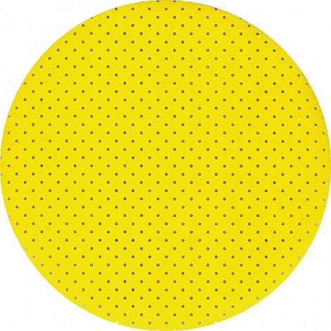 WYSOKIEJ JAKOŚCI OKRĄGŁY ŻÓŁTY PAPIER ŚCIERNY DO MONTOWANIA NA RZEP DO SZLIFIERKI O ŚREDNICY 225mm.POSIADA ON PERFOROWANE OTWORY,DZIĘKI CZEMU PYŁ ZOSTAJE ODESSANY NIE BLOKUJĄC PRACY ŻYRAFY.