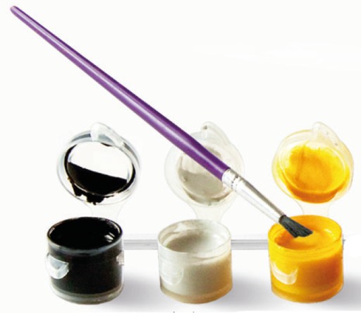 Zestaw zawiera skarbonkę z nieszkliwionej ceramiki, 6 kolorów kolorów niezmazywalnych farbek i pędzelek.