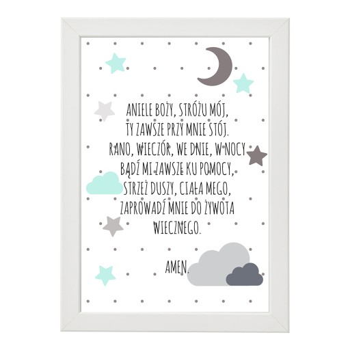 Modlitwa „Aniele Boży stróżu mój” lub inna w formacie A4 oprawiona w ramę.