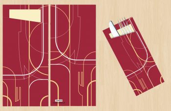 Etui na sztućce papierowe o wymiarach 20,5 cm x 9 cm z serwetką 2 warstwową 33x33 cm. w środku.