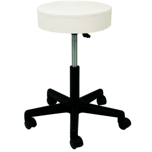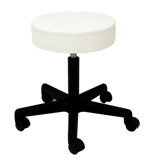 Siedzisko osadzone jest na stabilnej pięcioramiennej podstawie. Dołączony komplet kółek pozwala na swobodne przemieszczanie taboretu podczas zabiegów. Dodatkowo samo siedzisko również jest obrotowe.