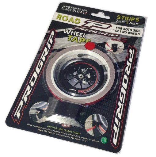 Paski na felgi motocyklowe renomowanej firmy Pro Grip®. Obejmuje aplikator oraz rolkę o długości 6,5 metra - wystarczy do oklejenia obu felg 17-calowych po obu stronach.