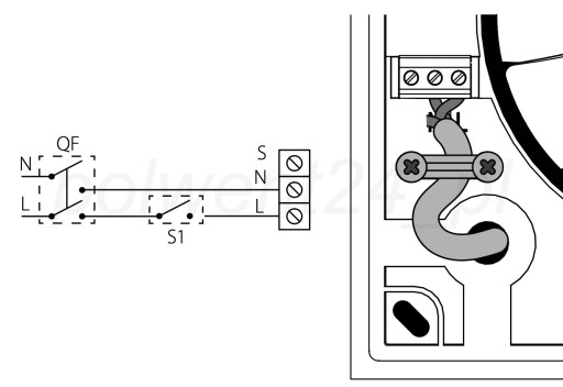 - QF - bezpiecznik w skrzynce elektrycznej